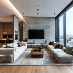 Современный стиль: Современный дизайн интерьера стремится к чистым линиям и функциональности. Скрытые плинтусы и теневые профили добавляют элегантности и изысканности, подчеркивая современный вид помещения.